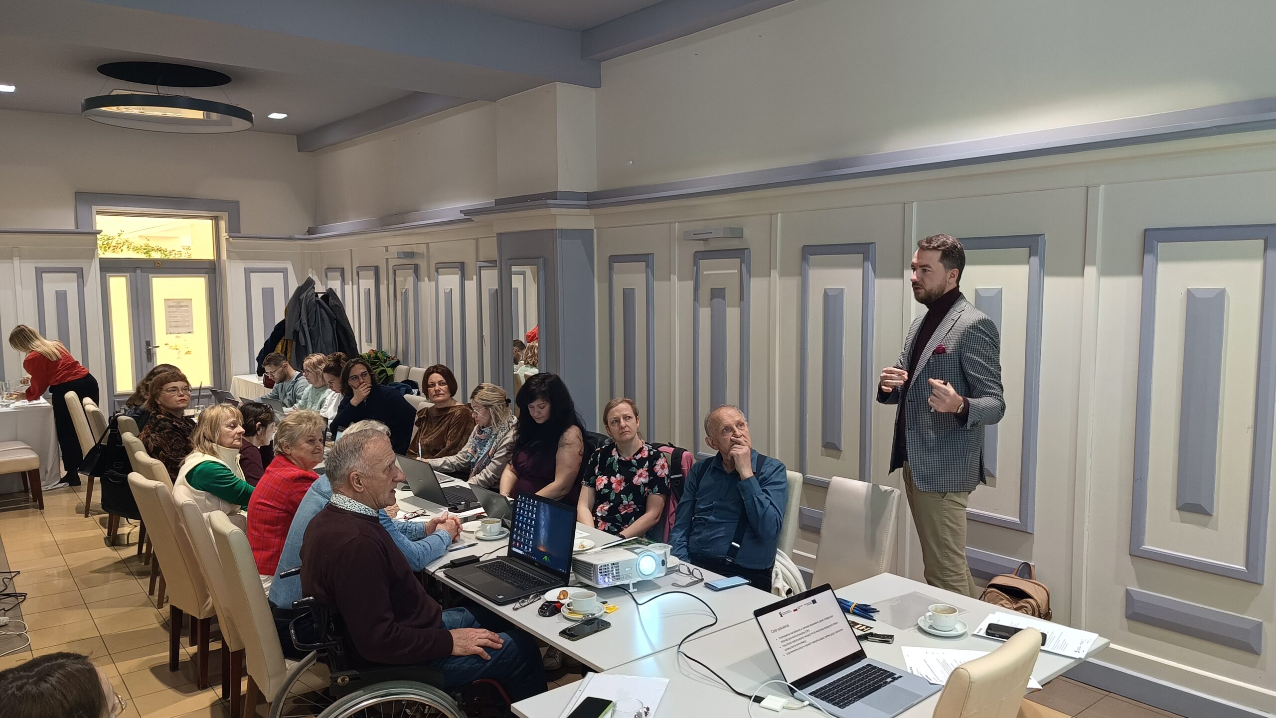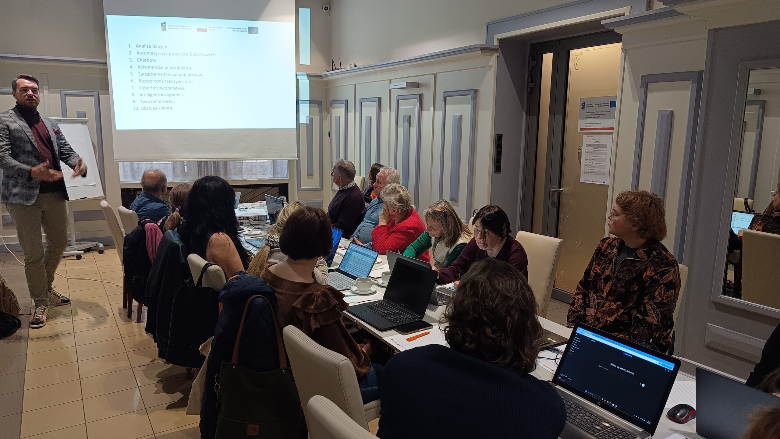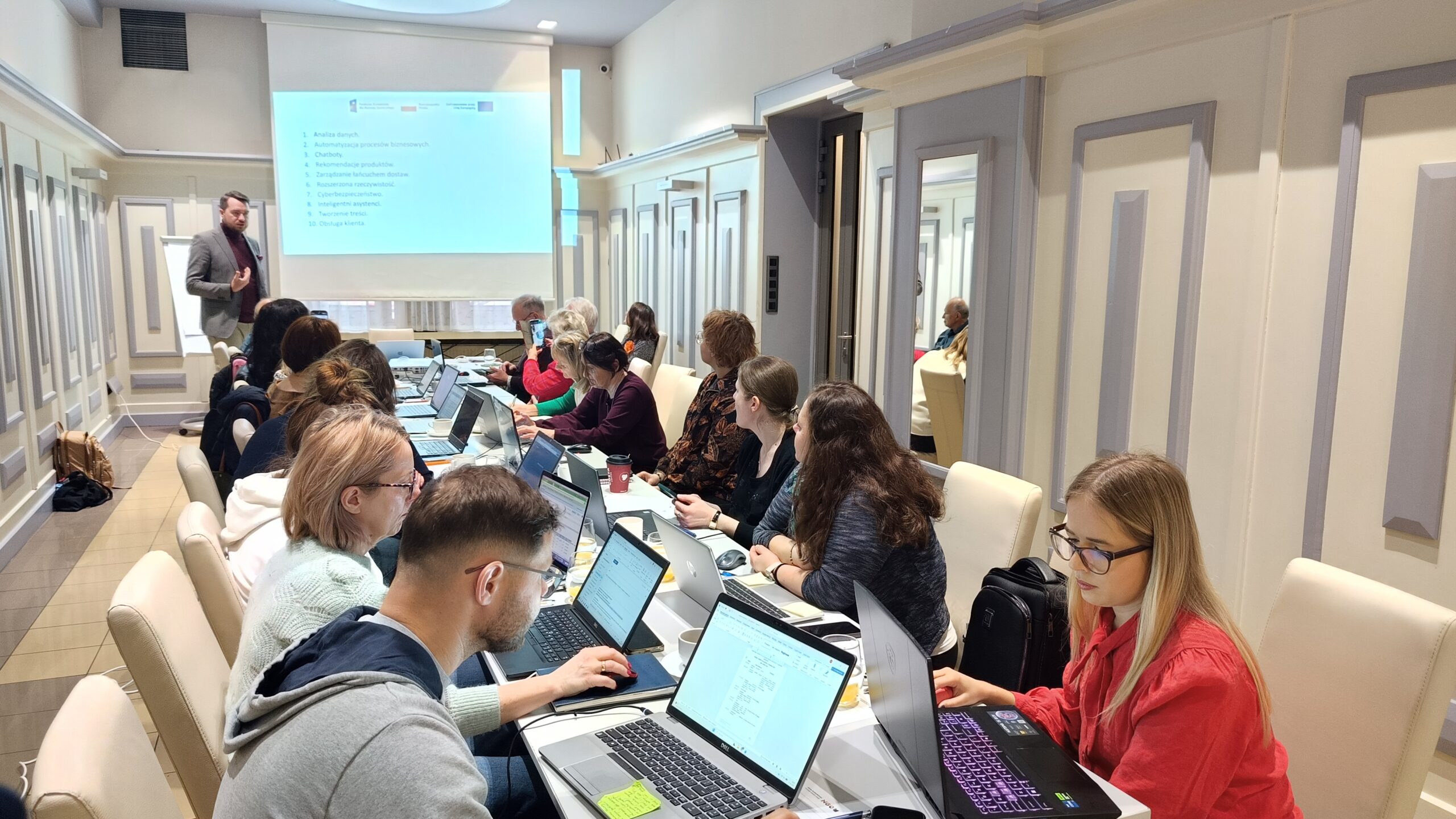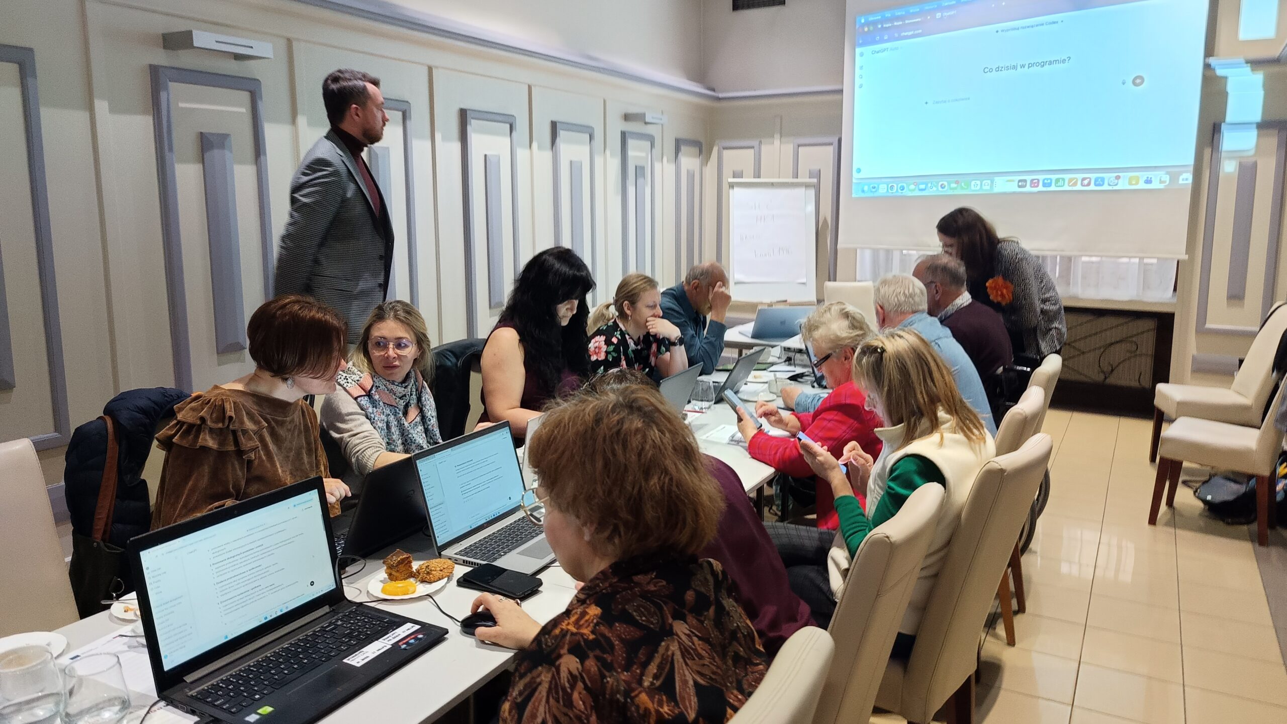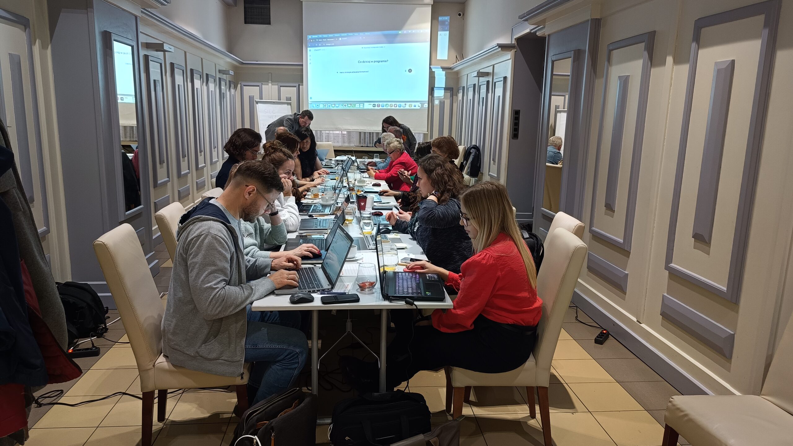 Szkolenie miało praktyczny charakter i koncentrowało się na wykorzystaniu narzędzi sztucznej inteligencji w codziennej pracy organizacji pozarządowych, ze szczególnym uwzględnieniem dostępności komunikacyjnej. Uczestnicy pracowali na własnych laptopach, dzięki czemu mogli na bieżąco testować omawiane rozwiązania i uczyć się ich zastosowania w realnych zadaniach.